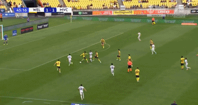 第44分钟,韦卢皮莱低射得分,墨尔本胜利再次领先,2-1