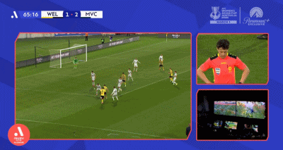 第77分钟,达里戈头球破门,墨尔本胜利3-1领先惠灵顿凤凰