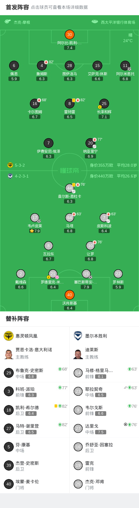 第77分钟,达里戈头球破门,墨尔本胜利3-1领先惠灵顿凤凰